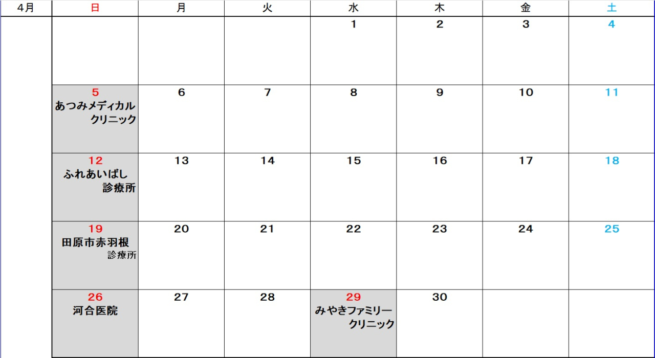 令和8年3月 ※3月23日(月)あつみメディカルクリニック→田原市赤羽根診療所に変更になりました。